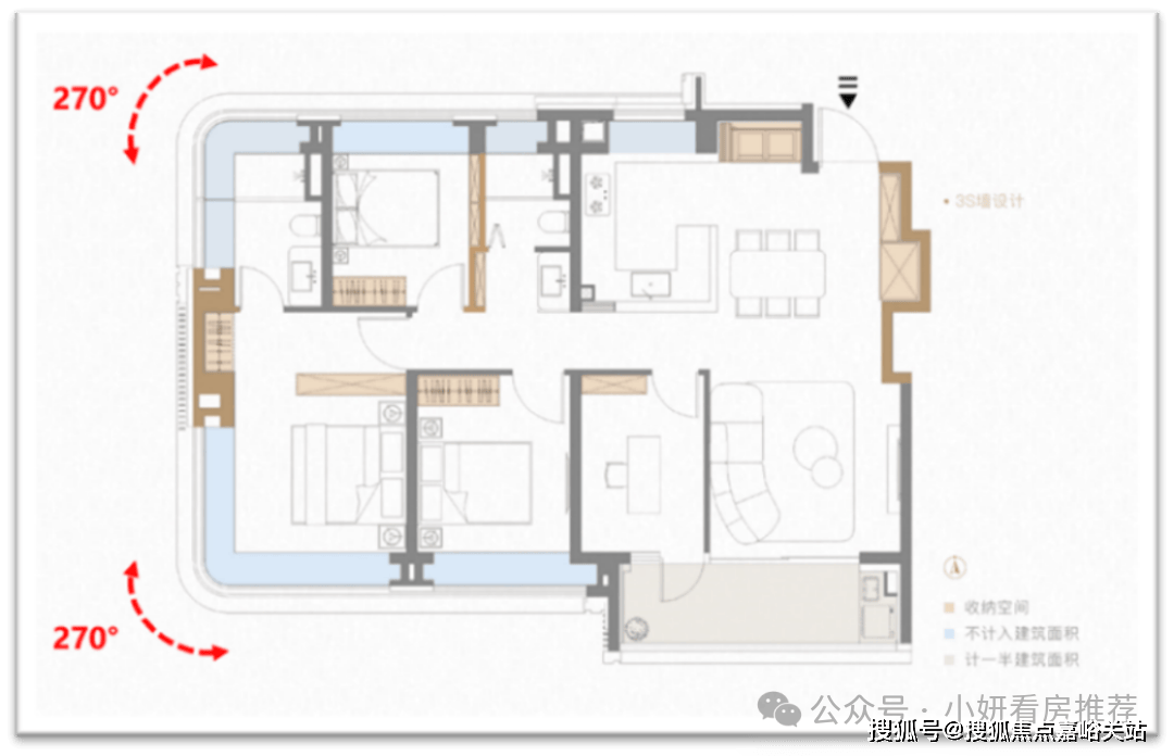 从“户型全面迭新+场景改革性+拆修奢享性”三沉冲破,以129㎡户型为例,